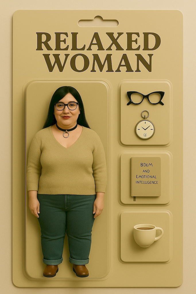 Es war ein Bild, das so viel mehr war als nur eine KI-Spielerei. Es zeigte mich, wie ich bin – oder sein könnte, oder vielleicht manchmal sein möchte: als „Executive Boss“, als „Relaxed Woman“, als „Healing Hero“. Nicht als Witzfigur. Nicht als Parodie. Sondern als starke, runde, elegante, verletzliche, kämpferische Frau mit Haltung, Stil – und einem verdammt gut platzierten O-Ring um den Hals.