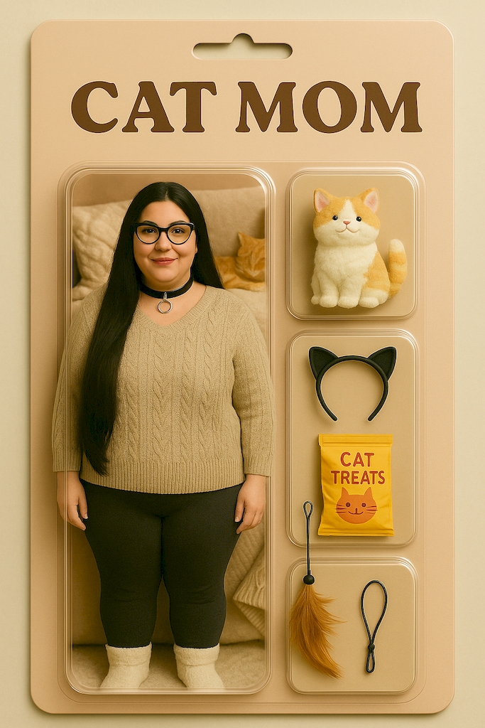 Als „Catmom“ sitze ich auf dem Sofa, eingekuschelt mit einer Plüschkatze und einem Tee – mein zärtlicher Rückzugsort.